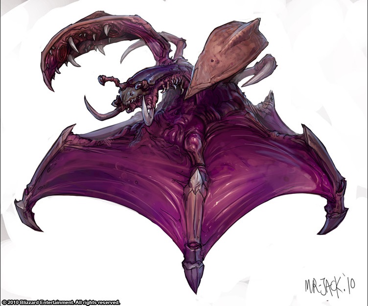 Parmi toute cette escadrille, un Zerg mi-bête mi-humanoïde était présent sur le dos d’un des dominant. Sa carrure faisait clairement penser à un nouveau type de Zerg, à moins que ce soit l’inverse ? Ce dernier avait une peau de cuire de plusieurs millimètres voir centimètres d’épaisseurs, des cornes d’os présent sur les coudes, le dos, la gueule et naturellement la queue. Ses griffes étaient pointues, dures et très acérés. Il avait trois paires d’yeux … autant dire que rien ne lui échappait ! Il avait une musculature prononcé, montrant que sa force n’était à pas sous-estimé … comme le reste des zergs vous allez me dire …