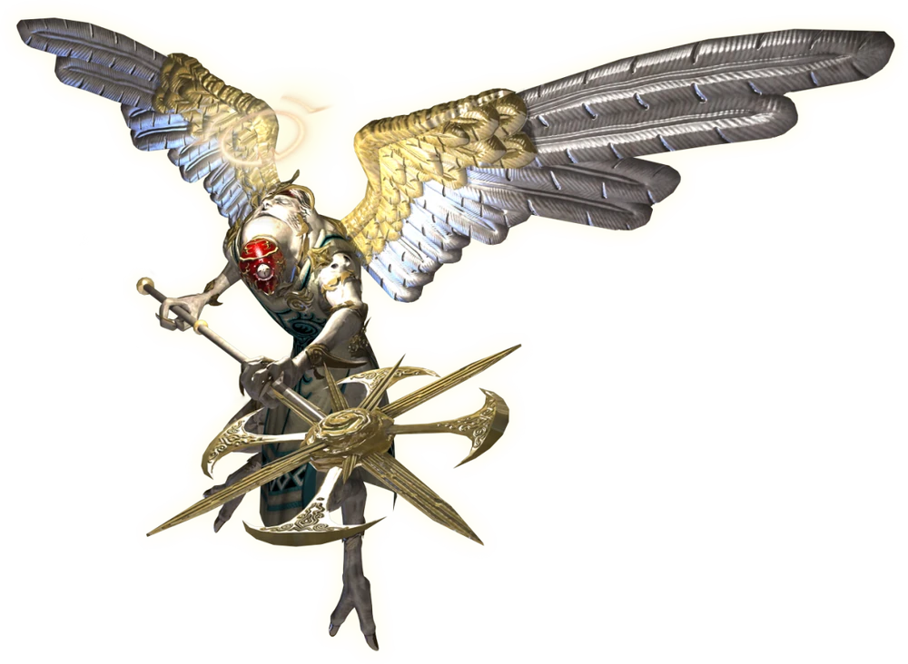 Les créatures célestes ressemblaient à d’étranges pastiches angéliques… Des monstres angéliques, qui surplombaient la femme, l’encerclant en battant des ailes, avant que, fendant les arbres, un monstre plus massif en armure rouge ne s’approche. Un Ardor, redoutable guerrier d’élite, qui tenait à la main une lourde épée, pendant que, dans le ciel, des Harmonies tournoyaient sur place. Tandis que la jeune femme, intriguée, leur demandait leurs intentions, l’épée de l’Ardor s’enflamma brusquement… Puis le géant se rua brusquement vers elle, le bouclier en avant. Une redoutable charge que la jeune femme évita de justesse. L’Ardor manifesta ainsi clairement ses intentions en heurtant un arbre situé derrière la jeune femme, l’explosant sur place… Et, au milieu des rondins de bois et des échardes s’envolant dans tous les sens, la jeune Yan put apercevoir les flammes de son épée, qui tournoyaient au milieu des bouts de bois, et s’abattit sur elle, la contraignant à la fuite… Et ce d’autant plus que les monstres ailés, ressemblant vaguement à de longues carpes, lancèrent depuis leurs gueules des sortes de boules électriques bleuâtres, de véritables missiles magiques qui explosèrent tout autour de Yan. Inutile d’espérer les entendre parler, ils étaient incapables de le faire, mais savaient attaquer.