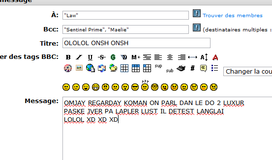 Sinon, y'a des bouts de ton message qui ont disparu nan ? (Lyan e Law semblent parler de trucs que je vois pas dans tes messages).