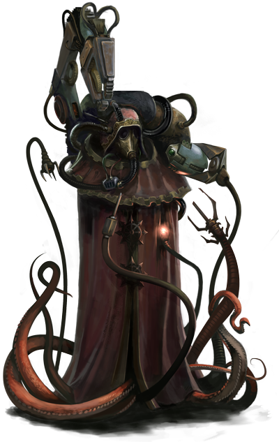 Quelques minutes plus tard un visiteur se présenta c'était un Technopretre lourdement cybernétisé un peu à l'image d'Ariman à la différence que le Technopretre était un véritable cyborg et pas un Obliterator.  Plusieurs signe montrait son appartenance au chaos mais la créature avait un aspect suffisamment avenant pour mettre un peu en confiance.