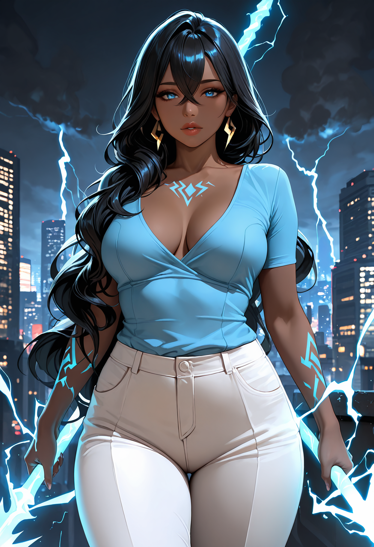 Mei pourrait très bien changer d'apparence à volonté. Pourtant il est une forme qu'elle arbore depuis des siècles et qu'elle apprécie tout particulièrement. Celle d'une magnifique jeune femme à la peau ébène dont on ne peut détacher le regard. Avec son mètre soixante dix et ses longues jambes elle fait tourner plus d'une tête. Ses cheveux raides lui arrivent à présent sous les fesses et sont aussi noirs que l'encre. Tandis que ses yeux ont l'éclat du ciel d'azur, un contraste saisissant et envoutant. Ses traits sont harmonieux et dégagent une certaines sensualité.